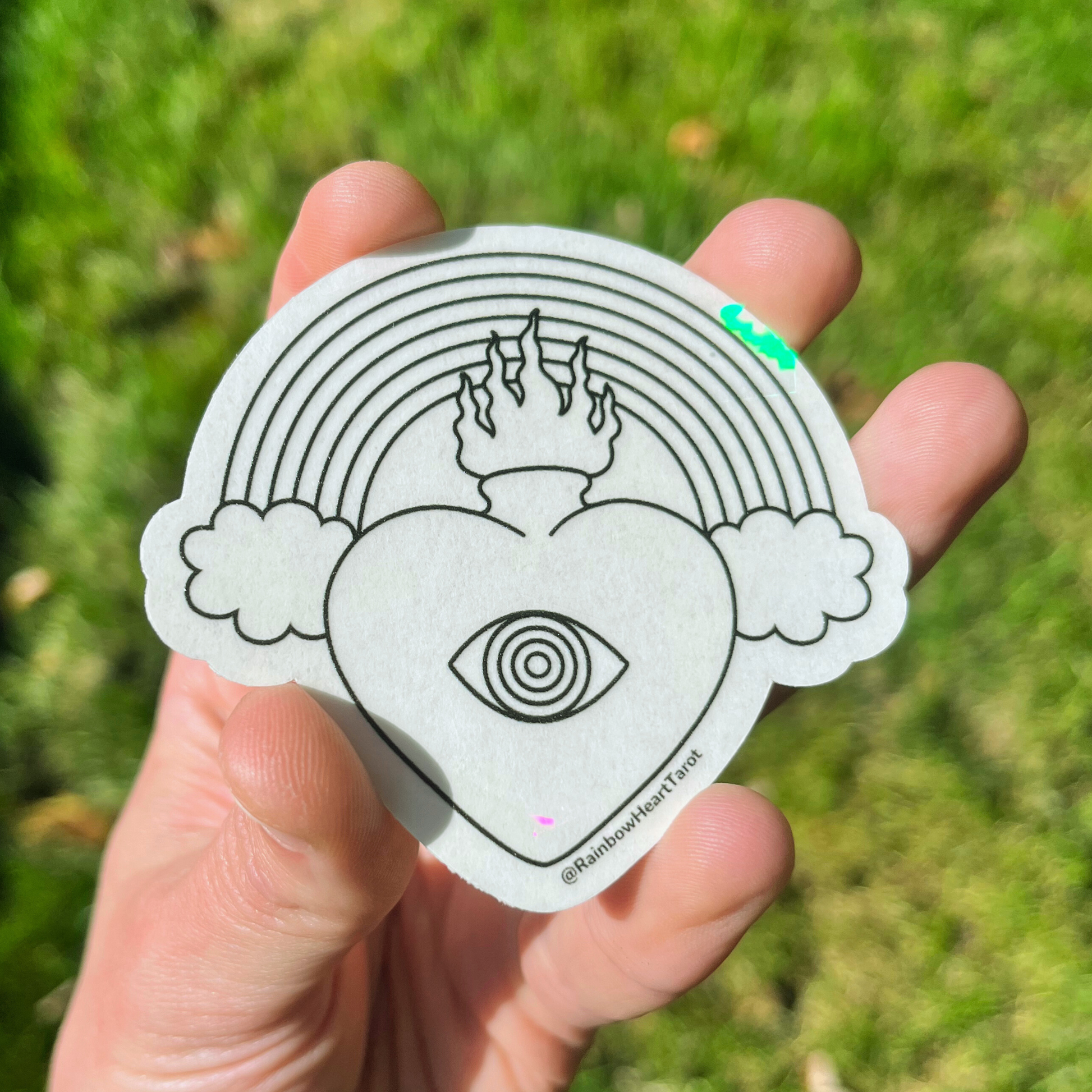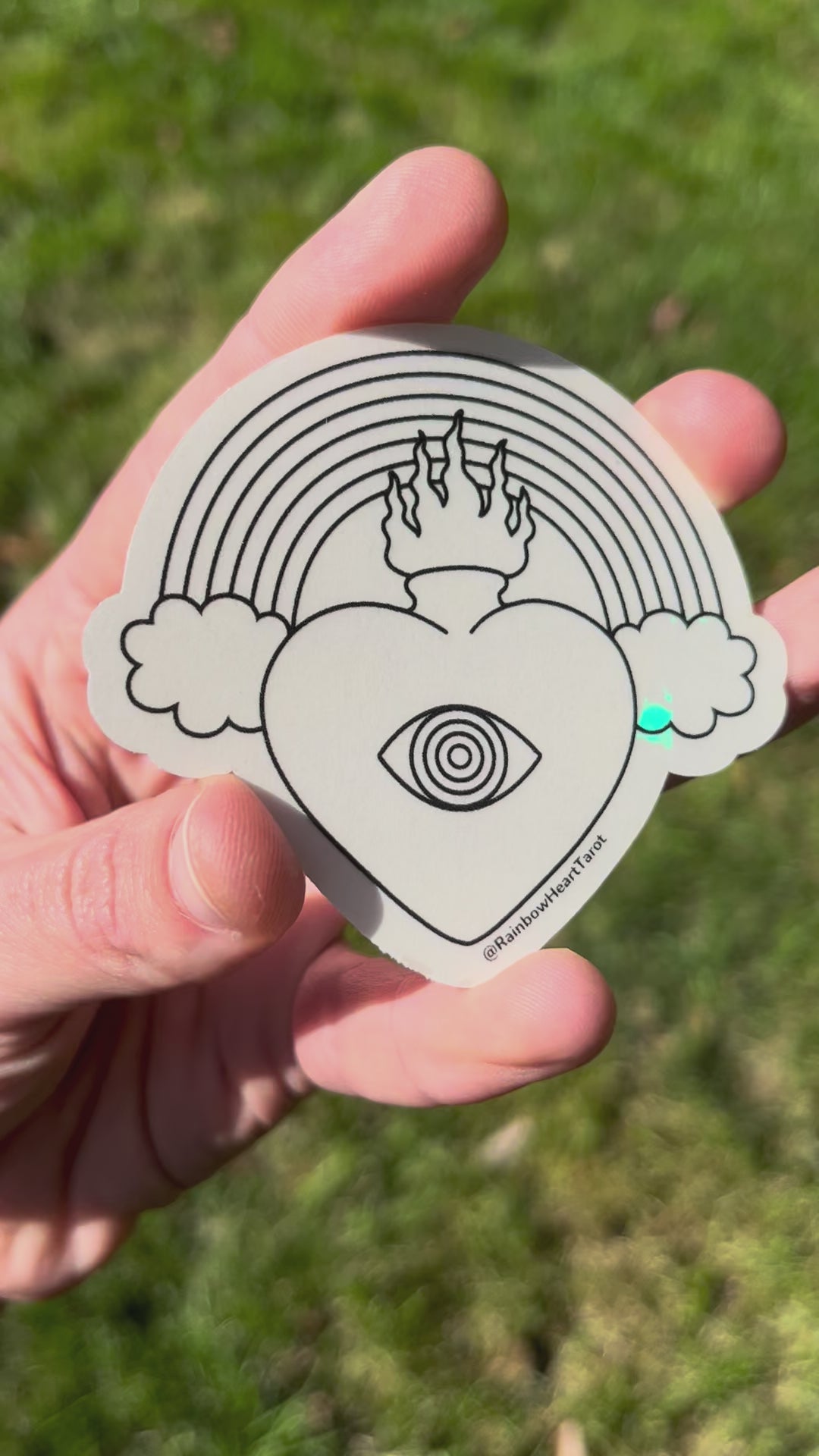 Starring the Rainbow Heart Tarot sacred heart logo, this sticker is made out of a durable material that holds up to scratches, water and sunlight. Perfect for windows, windshields and more.