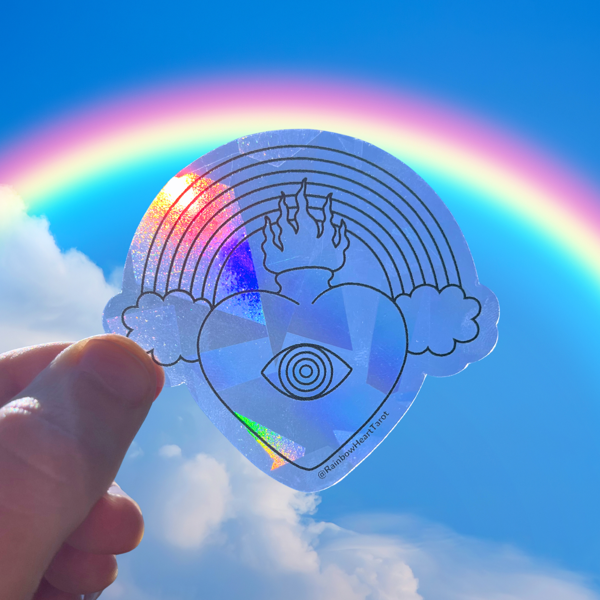 Rainbow Heart Tarot Suncatcher Logo Sticker